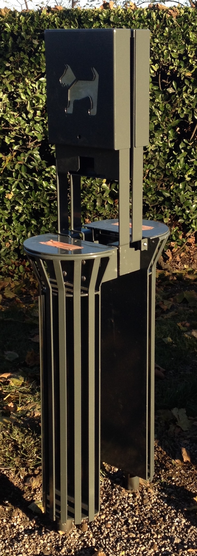 Corbeille avec distributeur de sac à déjection canine en tôle galva pliée épaisseur 2.5mm.